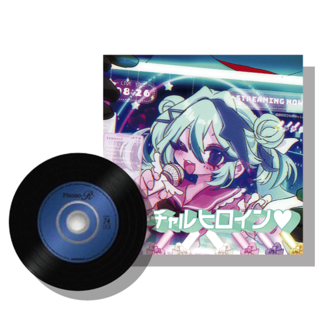 バーチャルヒロイン♡の円盤です☆ オリジナル曲のCDとしては2枚目…! 冬コミC103では完売!ありがとうございますmm CDもレコードみたいになっててとても可愛いです。 直筆サイン入りでお届けしますっ☆ イラスト:神そんにゃ 作曲:びわ湖くん